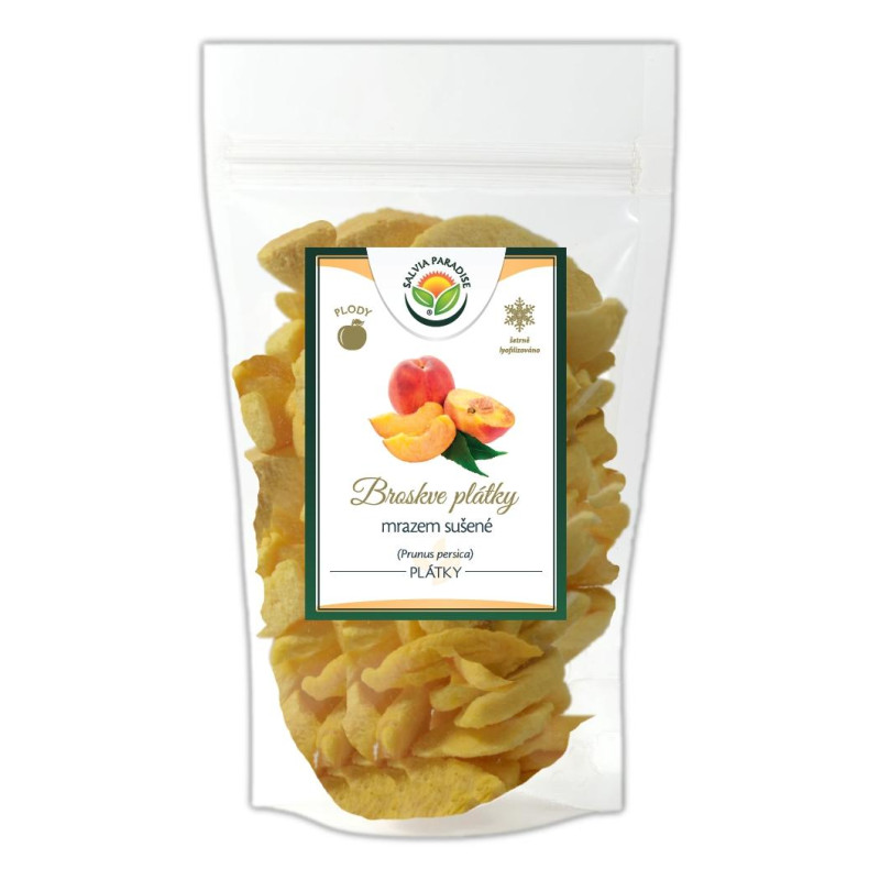 Gefriergetrocknete Pfirsiche sind ballaststoffreich, eine Quelle von Kalium und Vitamin C. Kalium trägt zur normalen Funktion des Nervensystems, der Muskeln und zur Aufrechterhaltung der normalen Durchblutung bei.