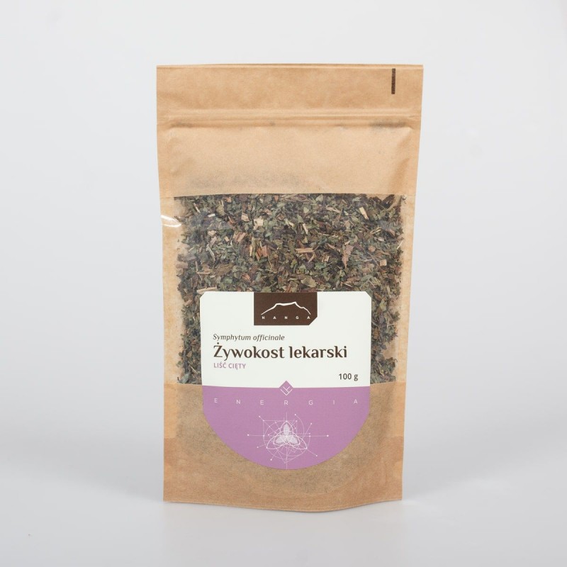 Beinwell (Symphytum officinale) ist unsere heimische Pflanze, aus der hauptsächlich die Wurzel gewonnen wird, aber es ist wichtig zu wissen, dass die Blätter des Beinwells auch in der Kräuterkunde verwendet werden. Beide Rohstoffe enthalten Allantoin, das die Gewebeerneuerungsprozesse beschleunigt, sowie Schleimstoffe mit beruhigender und schützender Wirkung. Aufgrund des Vorhandenseins von Pyrrolizidinalkaloiden, die als toxisch für die Leber eingestuft sind, wird der Verzehr von Wurzelpräparaten nicht empfohlen (äußerlich angewendet). Allerdings ist das Kraut arm an ihnen, weshalb daraus Tees und Tinkturen für den oralen Gebrauch zubereitet werden können.