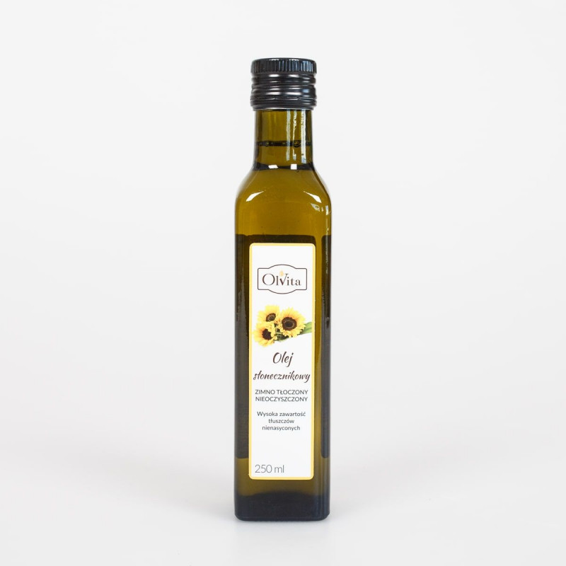 Kaltgepresstes Sonnenblumenöl Sunflower Olvita ist eine Pflanze, die jeder seit Jahrtausenden kennt. Er wurde vor 3000 Jahren von den Stämmen Amerikas kultiviert. Zu dieser Zeit wurde es verwendet, um Schlangenbisse zu lindern und den Körper zu nähren. Heute ist die Sonnenblume eine wichtige Nutzpflanze, die in vielen Branchen - Lebensmittel, Kosmetik, Gartenbau - verwendet wird. Sonnenblumenöl wird aus fettreichen Sonnenblumenkernen (38%) gepresst. Derjenige, der unraffiniert, d.h. kaltgepresst ist, hat ein angenehmes Aroma und einen angenehmen Geschmack von Sonnenblume und eine intensive gelbe Farbe. Es kann zu Salaten, Saucen, Suppen und Smoothies hinzugefügt werden. Der Rauchpunkt von Sonnenblumenöl ist mit 107°C niedrig, daher solltest du nicht damit frittieren.