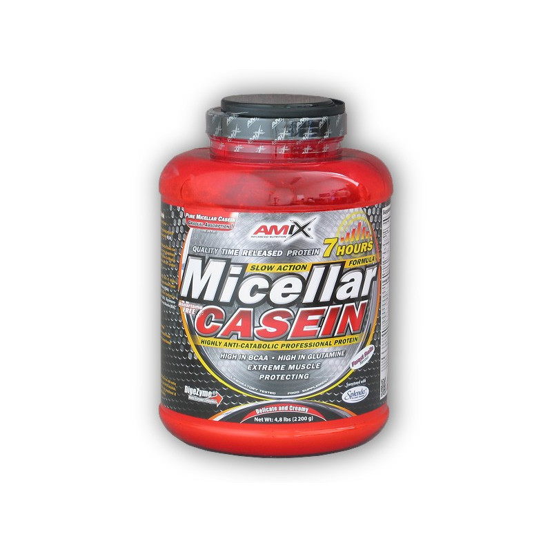 Mizellares Kasein Mizellares Kasein ist ein Milchproteinkonzentrat, das mizellares Kaseinund Molkenprotein im gleichen Verhältnis wie Magermilch 80:20 enthält. Mizellares Kasein enthält einen hohen Anteil an L-Glutamin sowie einen hohen Anteil an verzweigtkettigen BCAAs (L-Leucin, L-Isoleucin, L-Valin). Mizellares Kasein enthält eine hohe Menge an Proteinfraktionen, wie Beta-Lactoglobulin, Alpha-Lactalbumin, Glykomakropeptid, Immunglobulin, Rinderserumalbumin, Lactoperoxidase, Lactoferrin.