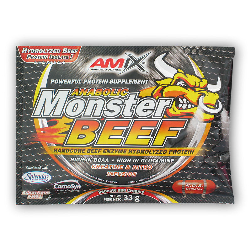 Mischen Sie 1 Beutel (33 g) AmixTM Monster Beef Protein in 250-350 ml kaltem Wasser oder fettarmer Milch.