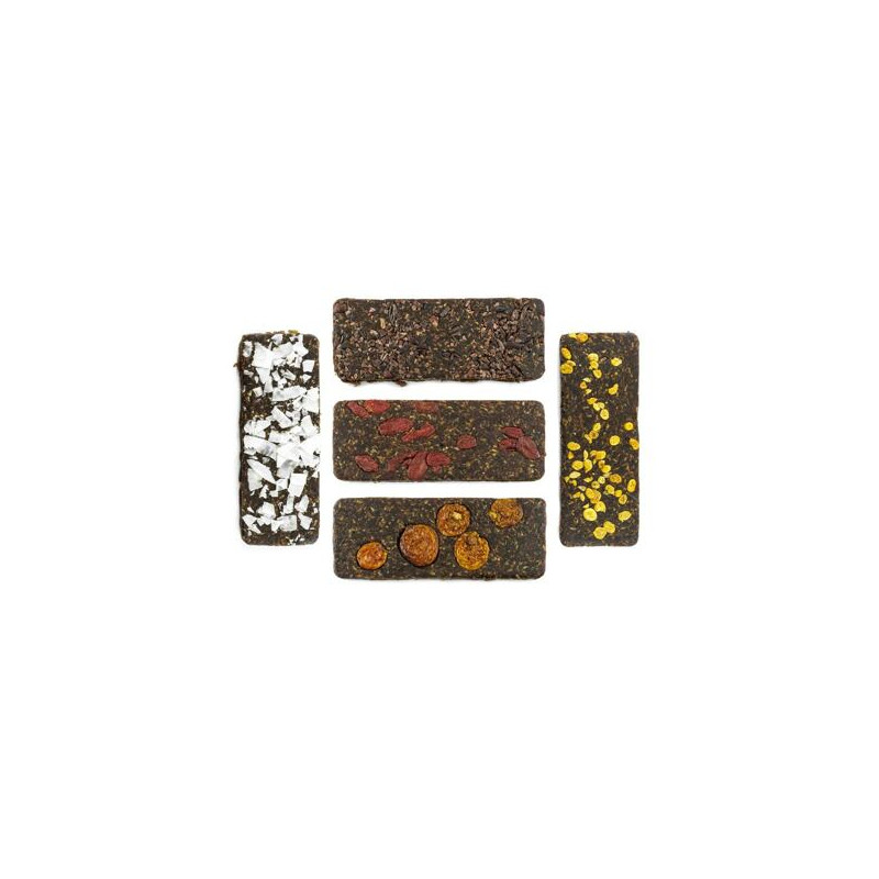 Gepresste Riegel, Laktosefrei, Glutenfrei, Vegan, -, Zutaten: Banane, Goji, Kakao, Kokosnuss, Moos, Sanddorn, Verpackung: Kunststoffverpackung