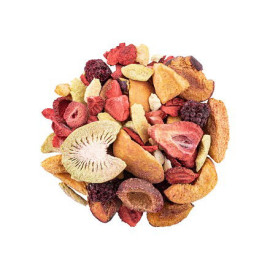 Gefriergetrocknete Früchte, Laktosefrei, Glutenfrei, Vegan, -, Zutaten: Erdbeere, Kiwi, Aprikose, Brombeere, Pflaume, Verpackung: wiederverschließbarer Reißverschlussbeutel
