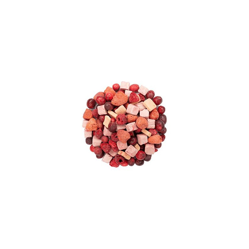 Laktosefrei, Glutenfrei, Vegan, -, Zutaten: Banane, Erdbeere, Crank, Kokosnuss, Himbeere, Verpackung: wiederverschließbarer Reißverschlussbeutel