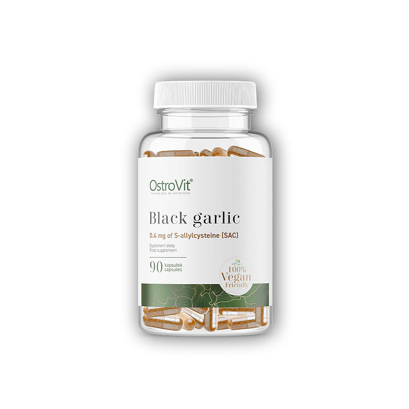 Zusammensetzung: Fermentierter Extrakt aus schwarzem Knoblauch (Allium Sativum L.), standardisiert auf 0,1 % S-Allylcystein (SAC), Verpackungszusammensetzung (Füllstoff: Hydroxypropylmethylcellulose).