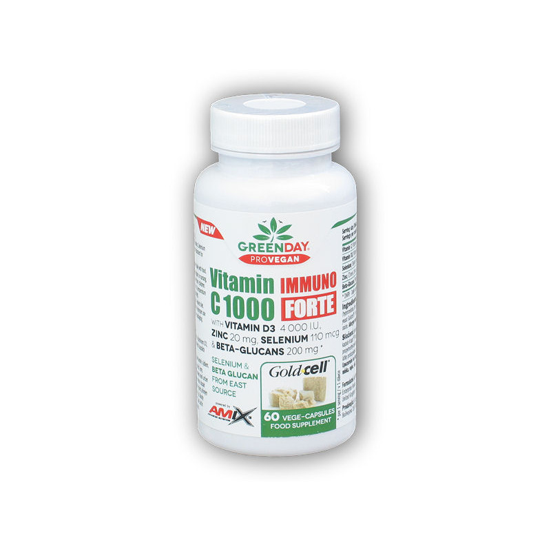 Zusammensetzung: Ascorbinsäure (Vit. C), Hefe-Beta-Glucane Goldcell® (Saccharomyces cerevisiae); Vcaps Plus pflanzliche® Kapsel (Hypromellose, Farbstoff: Titandioxid); Stabilisator: Hydroxypropylmethylcellulosemethocel®; Selenhefe Goldcell® (Saccharomyces cerevisiae), Cholecalciferol (Vit. D3), Trennmittel: Magnesiumstearat und Siliciumdioxid; Zinkoxid.